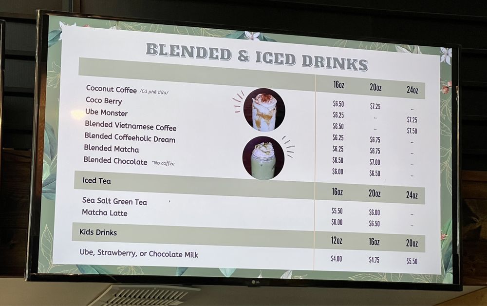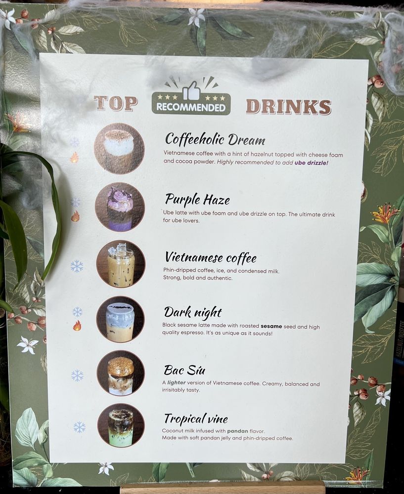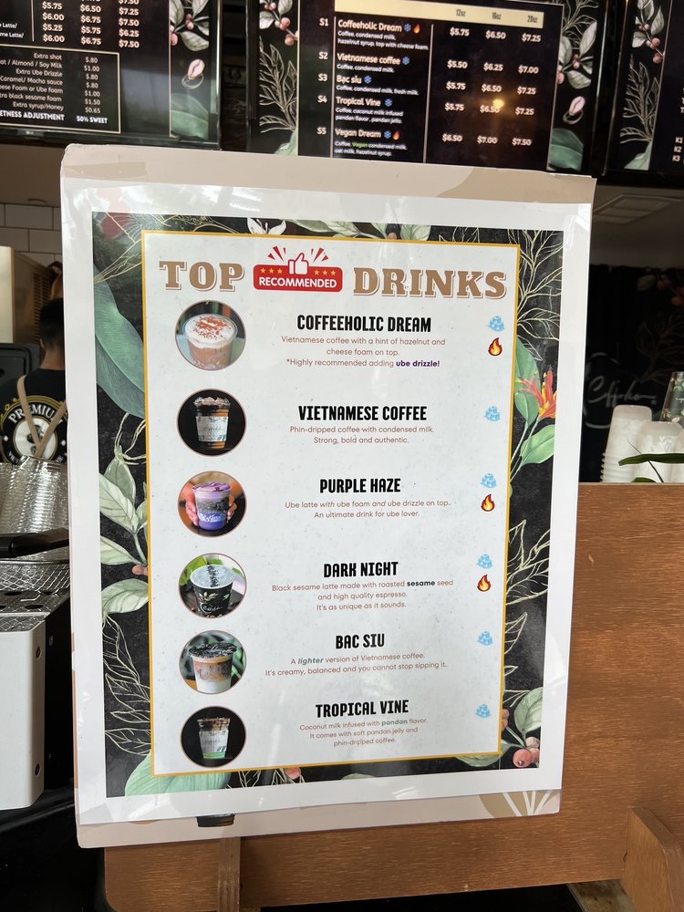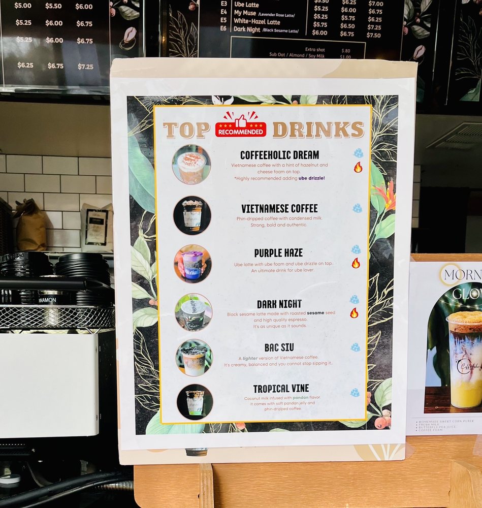 A lighter version of Vietnamese coffee, with less caffeine. More like a latte but still well-balanced and delicious. Cannot be made nondairy.