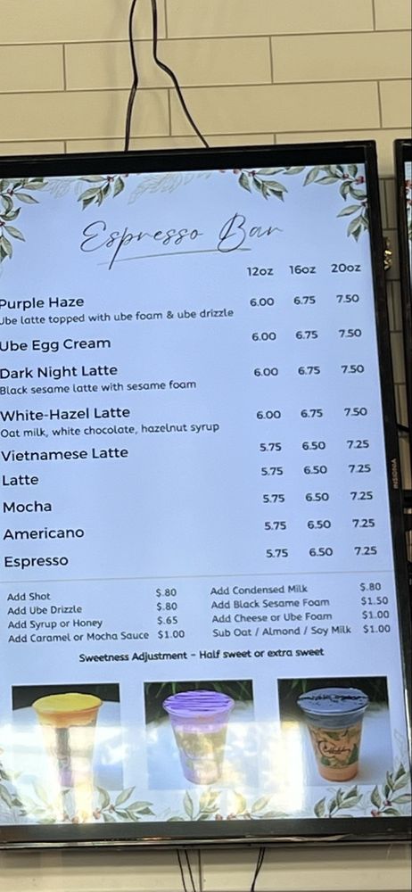 Ube latte topped off with a layer of ube foam. Foam contains dairy, cannot be made non-dairy.