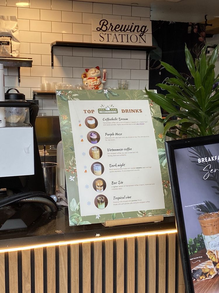 Vietnamese coffee with hazelnut, cheese foam & cocoa powder. Unable to sub out hazelnut syrup